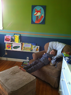 Adding the curtains, and the flag banner to the already existing little fox painting and shelves, really completed his big boy room :)